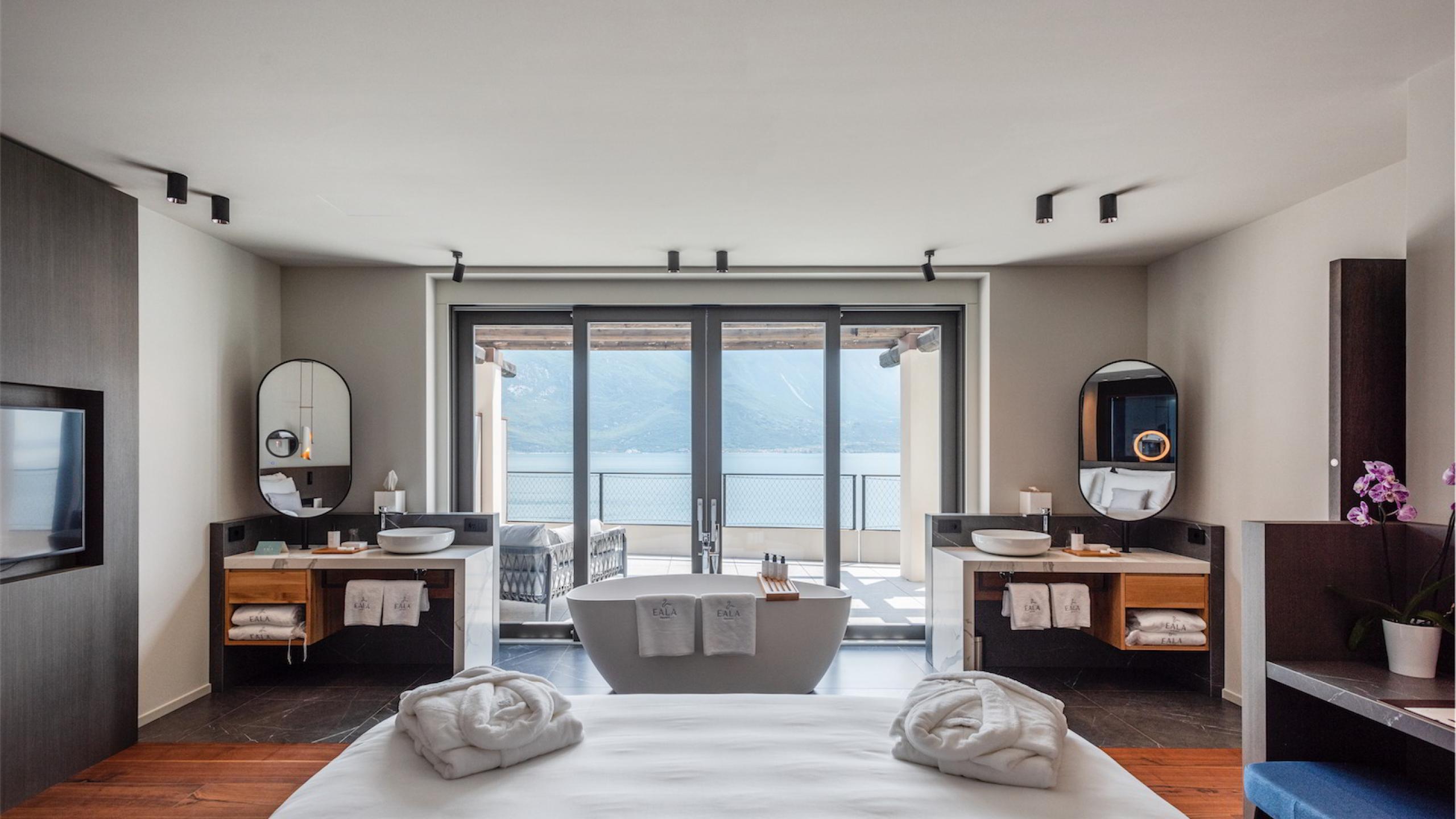 - Terrazza vista lago di 58 m² con vasca Airpool e sauna panoramica
